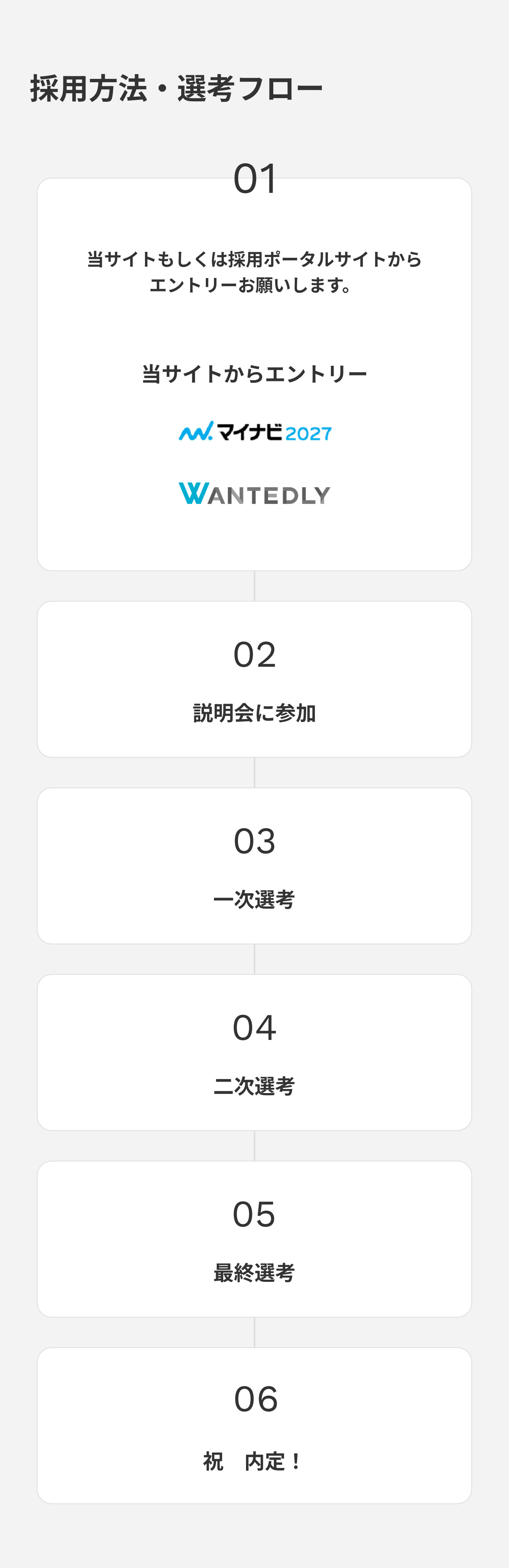 ※年末年始、GW休暇、夏季休暇、慶弔休暇、有給休暇(入社半年後に付与)、産前・産後休暇、育児休暇